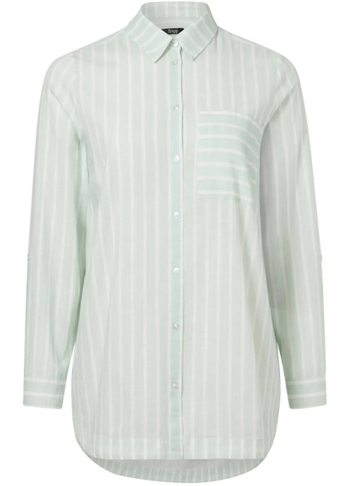 Business, Freizeit oder Party, diese Bluse von FRAPP lässt sich einfach in Ihren Alltag integrieren. Ihr gestreiftes Allover-Muster schafft ein dezentes, zeitloses Design. Durch Querstreifen im oberen Rückenbereich und an der Brusttasche entsteht gleichzeitig ein aufregender Kontrast, der alle Blicke auf sich zieht. Ihre lässige Passform mit verlängertem Rücken und die weiche Baumwolle verleihen der Bluse zudem ein wunderbares Tragegefühl, welches den ganzen Tag anhält.